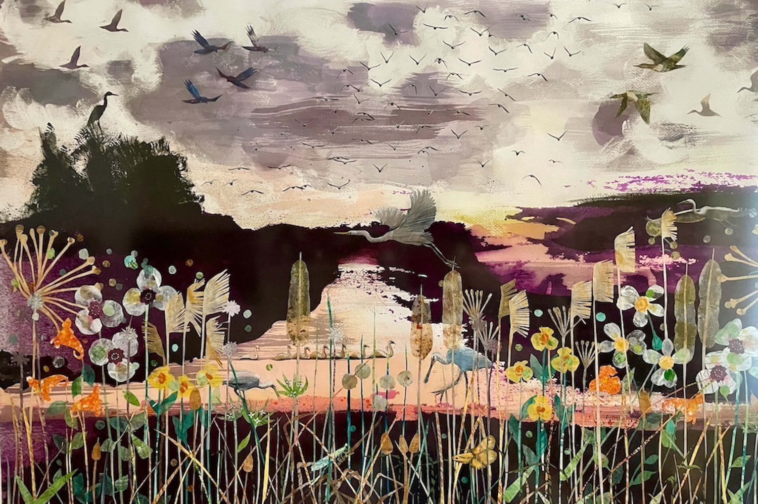 Jessica combines collage, painting and mixed media techniques to depict real and imagined landscapes