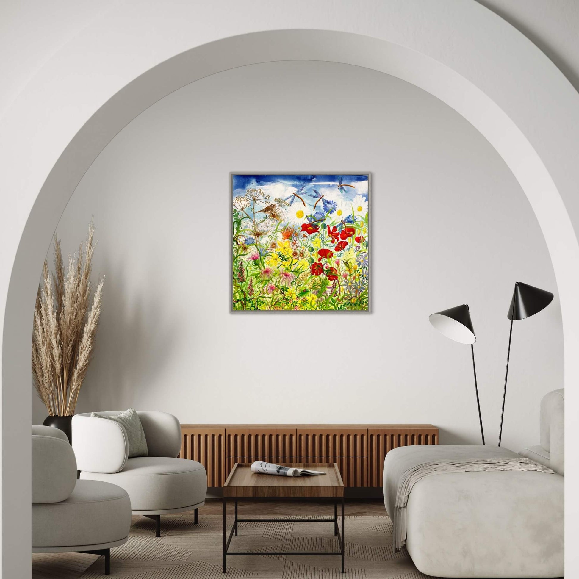 Amid the riotous profusion of an English Summer meadow, poppies nod their lazy heads and dragonflies dance in the warm air